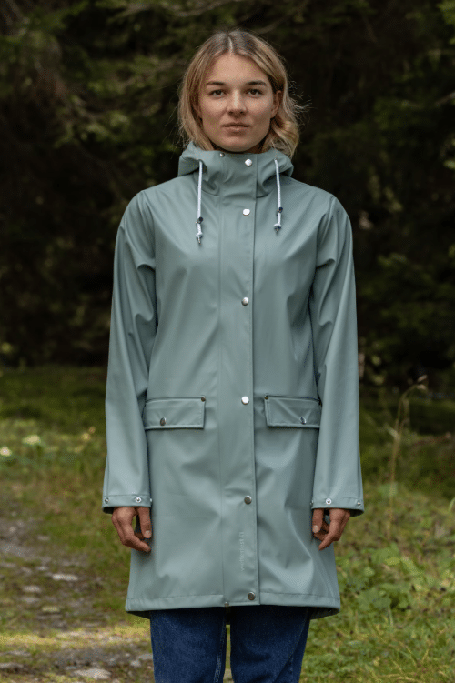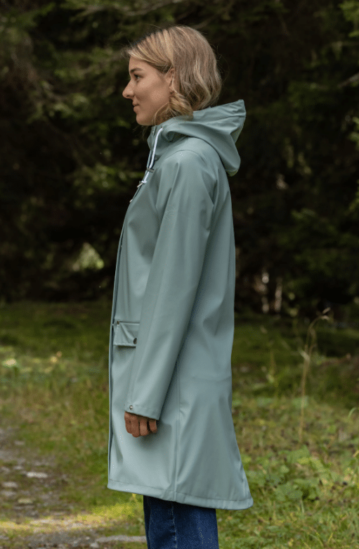 Kiara. Die ideale Regenjacke für alle Gelegenheiten. Ob du auf ein Festival gehst, in der Natur spazieren willst oder in die Stadt bummeln möchtest, Kiara hält dich trocken und warm. Das PU-Material ist leicht und robust zugleich und die Länge der Jacke bietet dir optimalen Schutz.